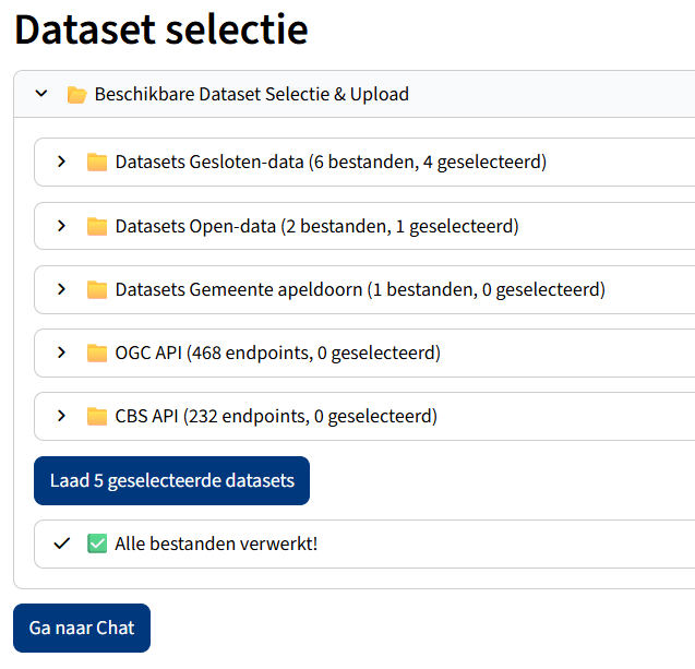 Je kunt zelf kiezen over welke data je analyses wil laten uitvoeren. Het selecteren van datasets is eenvoudig: upload je eigen data, kies uit vooraf klaargezette data en/of roep direct API’s aan. De applicatie toont ter inspiratie verschillende doelgroepen die je zou kunnen bedienen.